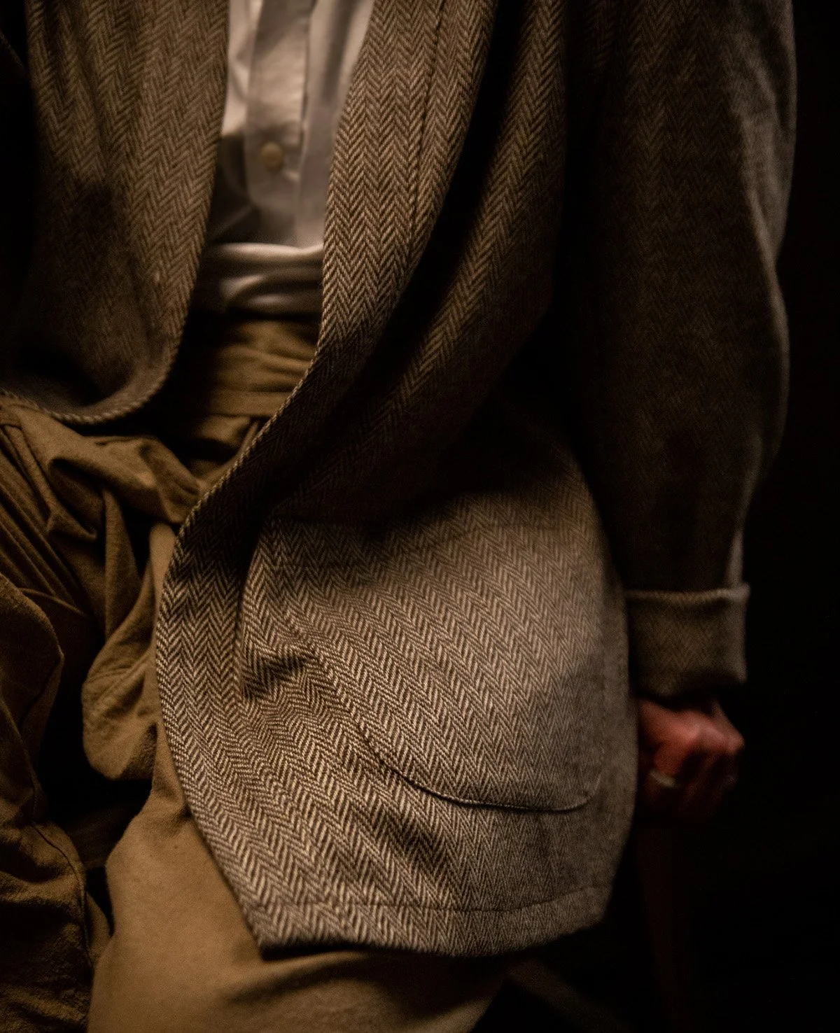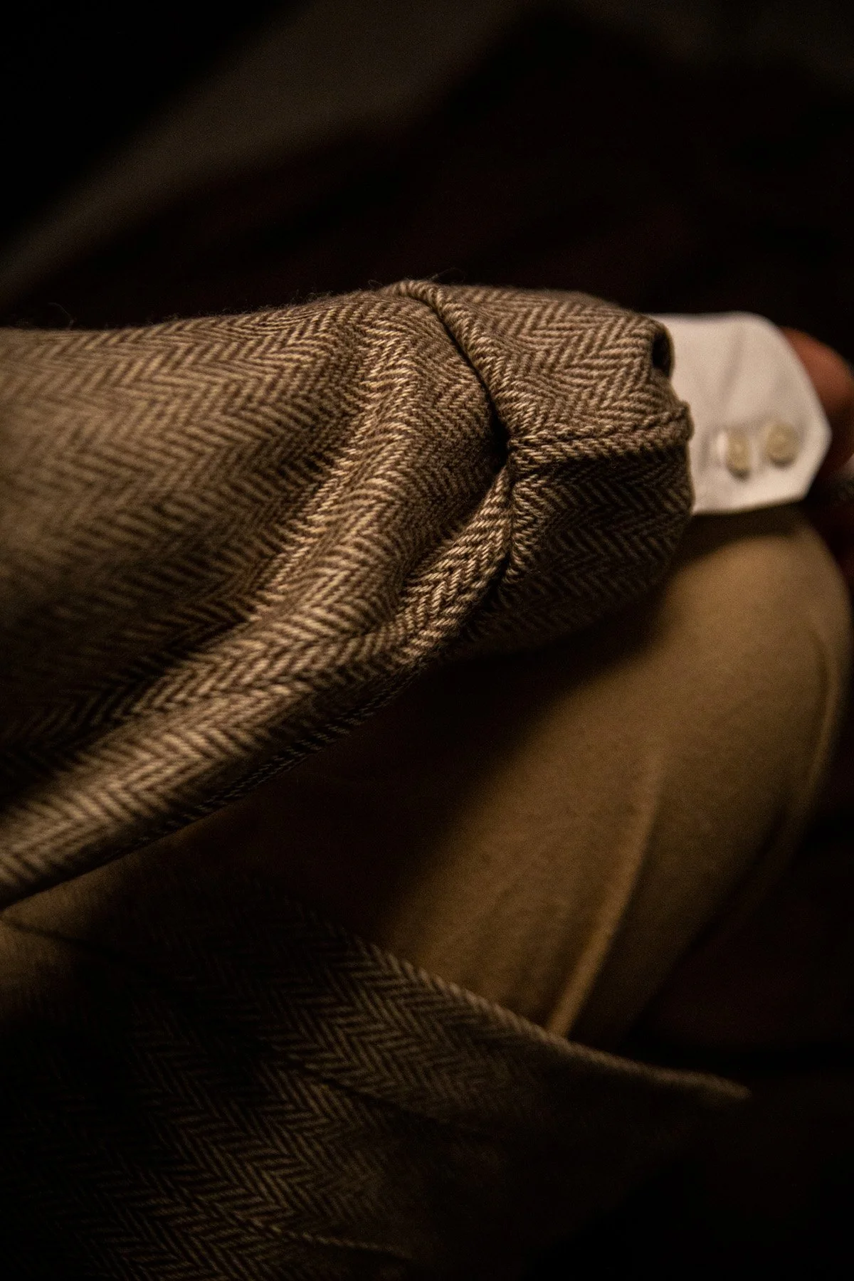 The Yukata IV features our first ever 50/50 blend of rare British Bluefaced Leicester sheep’s wool with our rare Khangai Yak Noble Fibres, using undyed natural fibres woven in a unique herringbone pattern in Yorkshire, England.